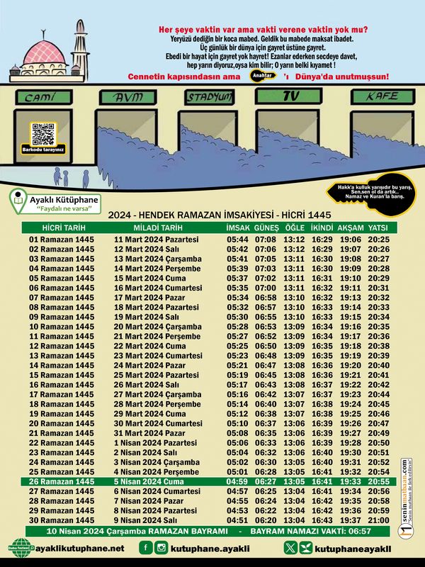 Diyanet Ramazan İmsakiyesi Balıkesir hangi tarihlerde geçerlidir?
