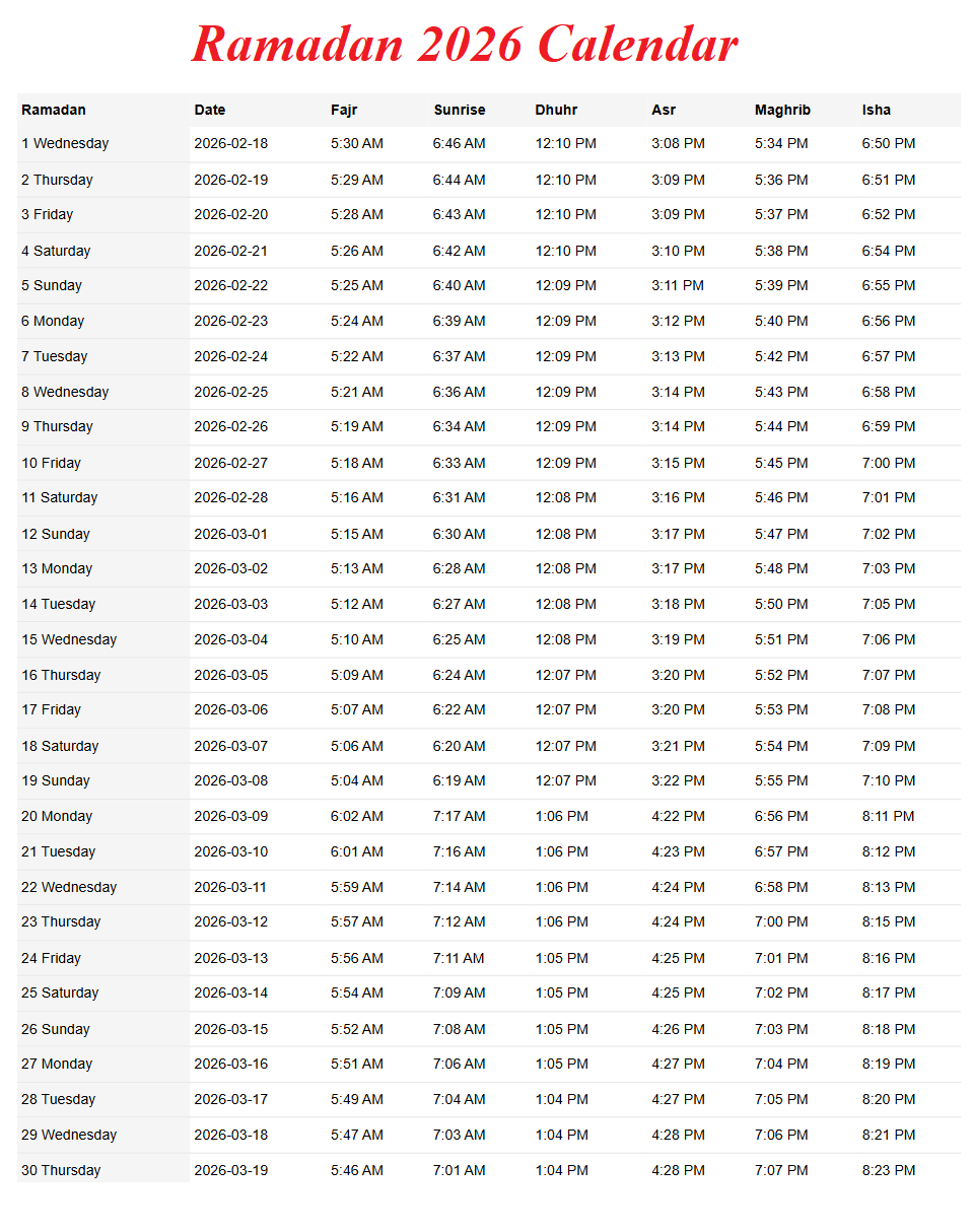 Fransa’da 2026 Ramazan oruç saatleri, her gün bir veya iki dakika değişiklik gösterecek. Bu nedenle, günlük olarak takip edilmesi önerilir.