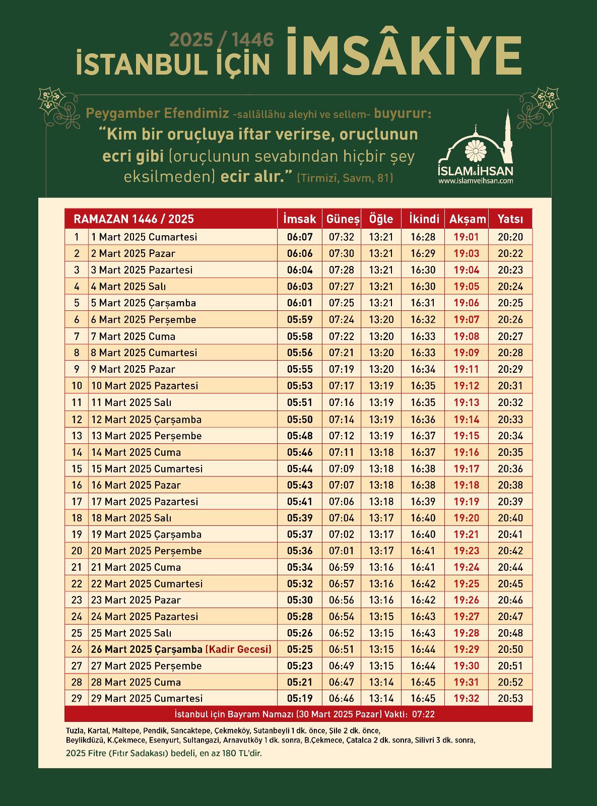İstanbul 2026 imsakiyesi nereden öğrenebilirim?
