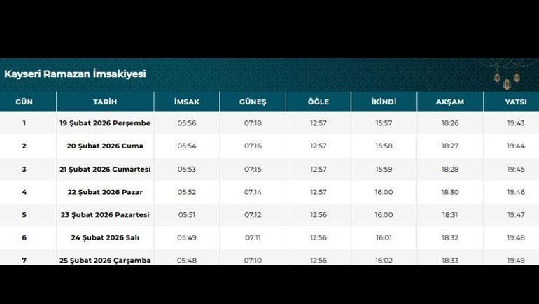 Ramazan imsakiyesi 2026 Kayseri için geçerli midir?