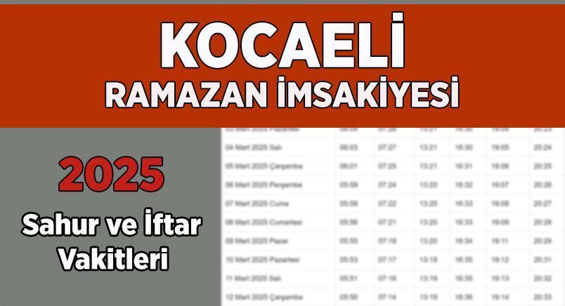 Kocaeli Ramazan saatleri 2026’ya Diyanet İşleri Başkanlığı’nın yayımladığı imsakiye üzerinden erişebilirsiniz. Bu imsakiye, imsak, sahur, iftar ve teravih saatlerini detaylı olarak içerir.