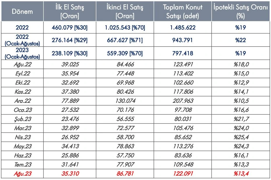 | İpotekli Satışlar | İpotekli konut satışları %35,9 arttı ve toplam satışların %22,9’unu oluşturdu. |