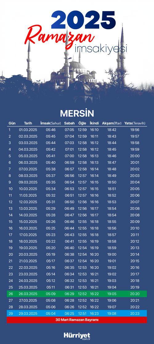 Ramazan 2026 takvimi Mersin için nasıl olacak?