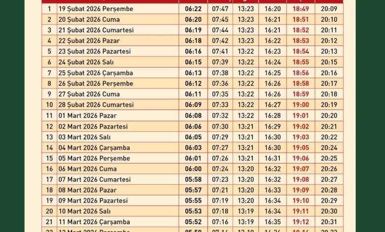 Devamını Oku »Ramazan İmsakiye 2026, Müslümanların kutsal ayı Ramazan için belirlenen iftar ve sahur saatlerini içermektedir.26 Nisan 2026 tarihinde başlayacak olan bu…