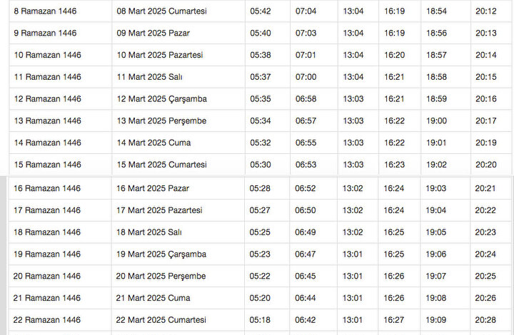 Devamını Oku »İftar saati, Ramazan ayının en özel anlarından biridir ve her gün çeşitli şehirlerde farklılık göstermektedir.11 Mart 2026 Çarşamba günü Türkiye'de…