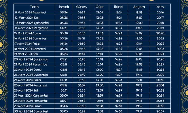 Ramazan İmsakiyesi, müslümanlar için önemli bir rehberdir.Ramazan ayının gelmesiyle birlikte, inananlar oruç ibadetlerini yerine getirmek üzere hazırlıklara başlarlar.